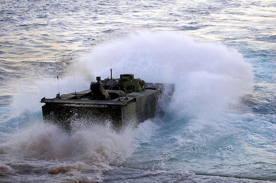 PACIFIC (Dec. 15, 2007) A U.S. Marine Corps Expeditionary Fighting Vehicle (EFV) departs the well deck of San Antonio-class amphibious transport dock ship USS New Orleans (LPD 18) on Dec. 15, 2007. U.S. Navy photo by Ensign Ashleigh S. Teitel