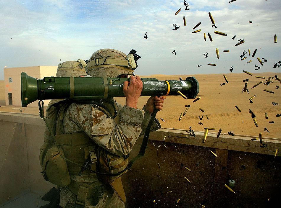 U.S. Marine Corps Lance Cpl. Tyler Carroll fires an AT-4 during live-fire training, Jan. 18, 2008, at the Udairi Range Complex in Kuwait. Marines with Company C, Battalion Landing Team 1st Battalion, 5th Marine Regiment, 11th Marine Expeditionary Unit, Camp Pendleton, Calif., are training as part of their current deployment to the Pacific and Arabian Gulf. U.S. Marine Corps photo by Sgt. Bryson K. Jones